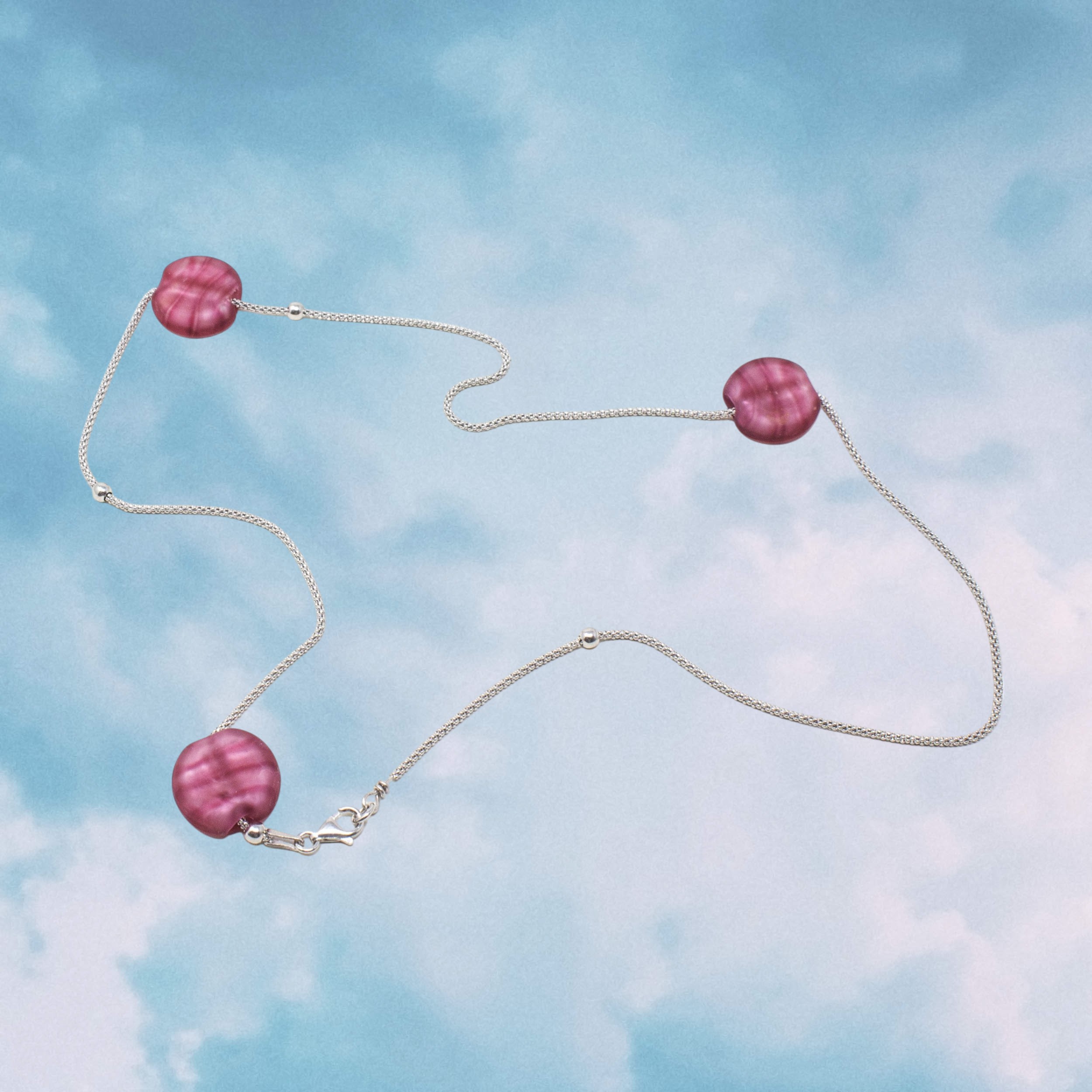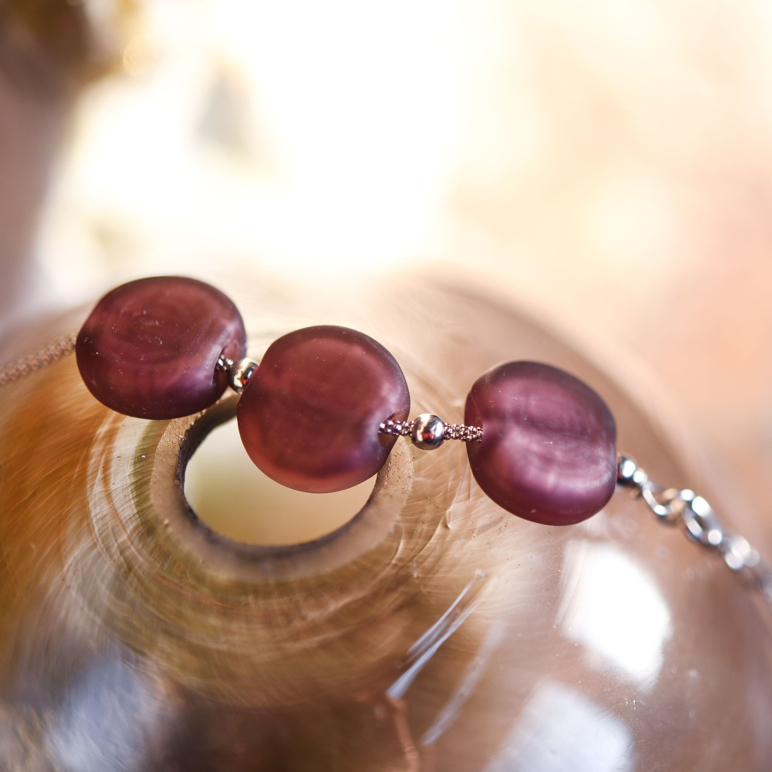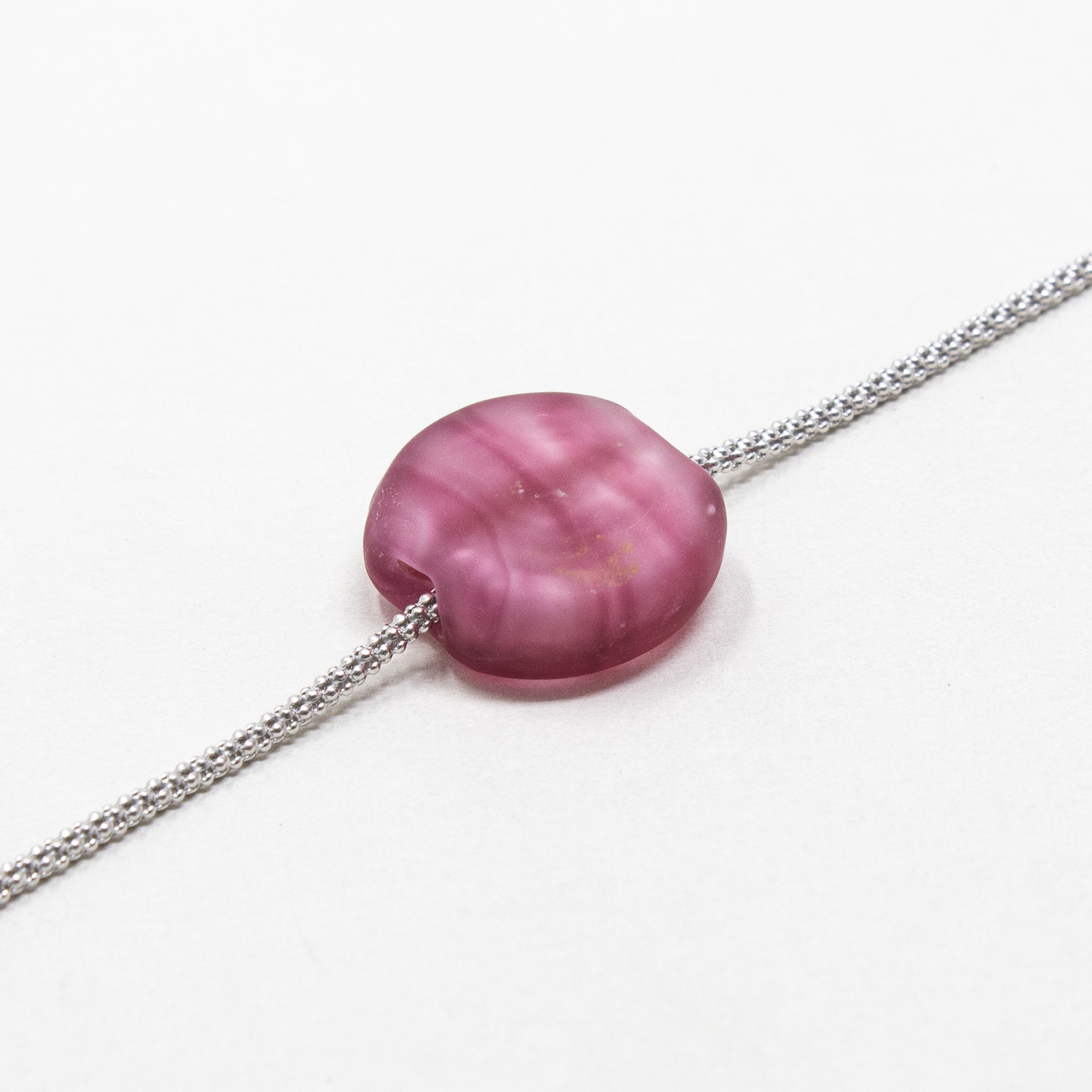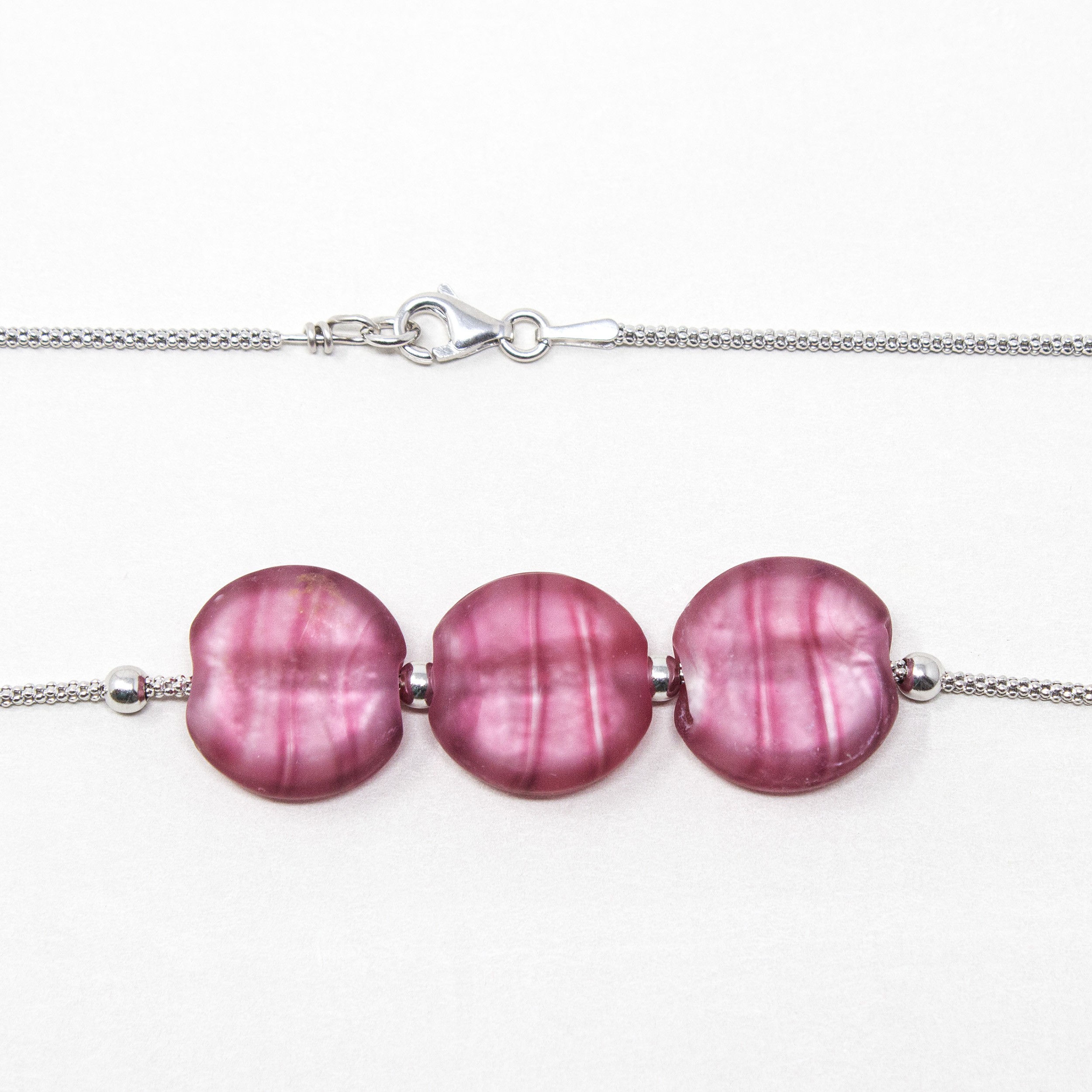 Collana in argento 925 con perle piatte in vetro di Murano satinato