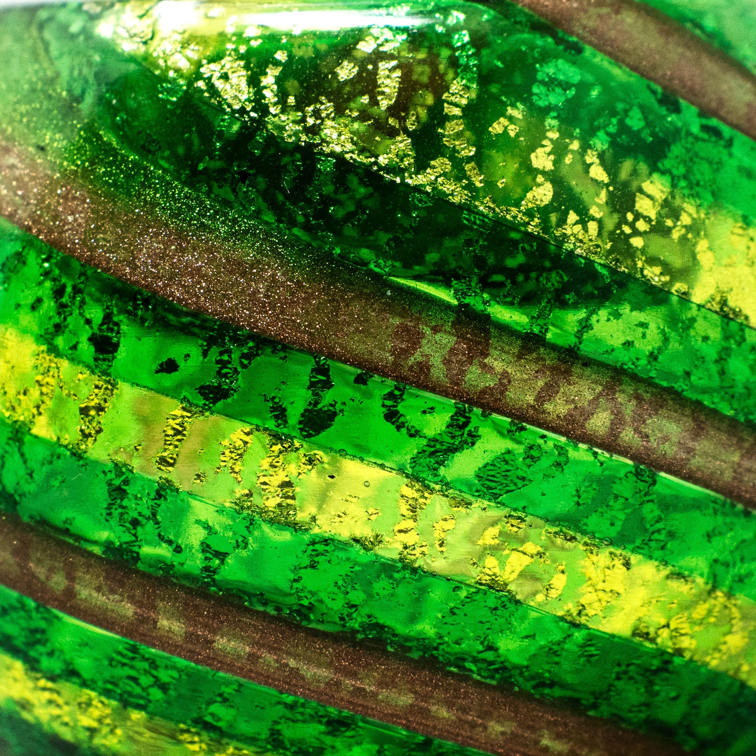 Realizzato a mano con la tecnica a canne, impreziosito di avventurina. Ogni pezzo è unico, con sfumature e dettagli irripetibili che ne esaltano la bellezza artigianale.