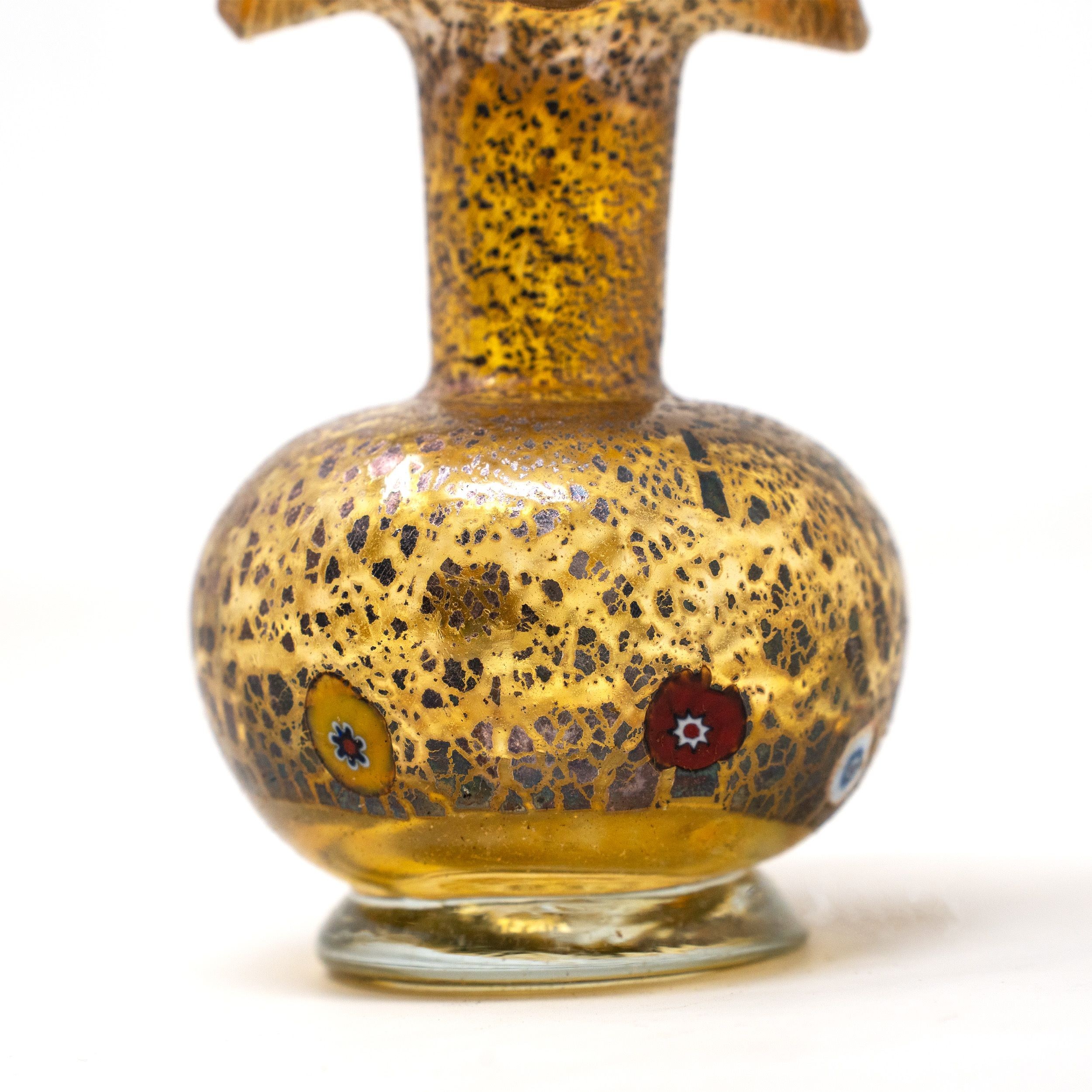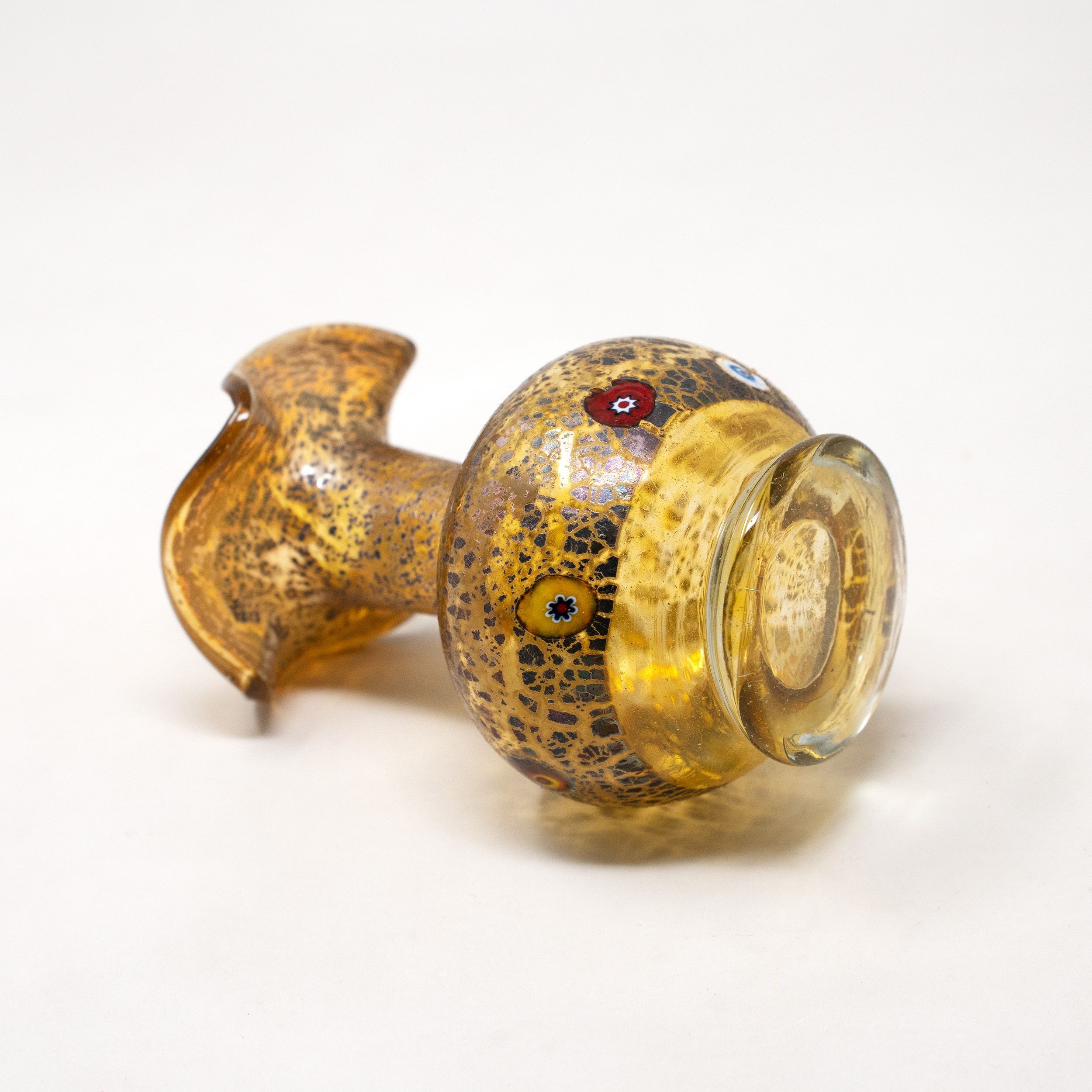Vasetto profumatore in vetro di Murano policromo con murrine millefiori e foglia argento