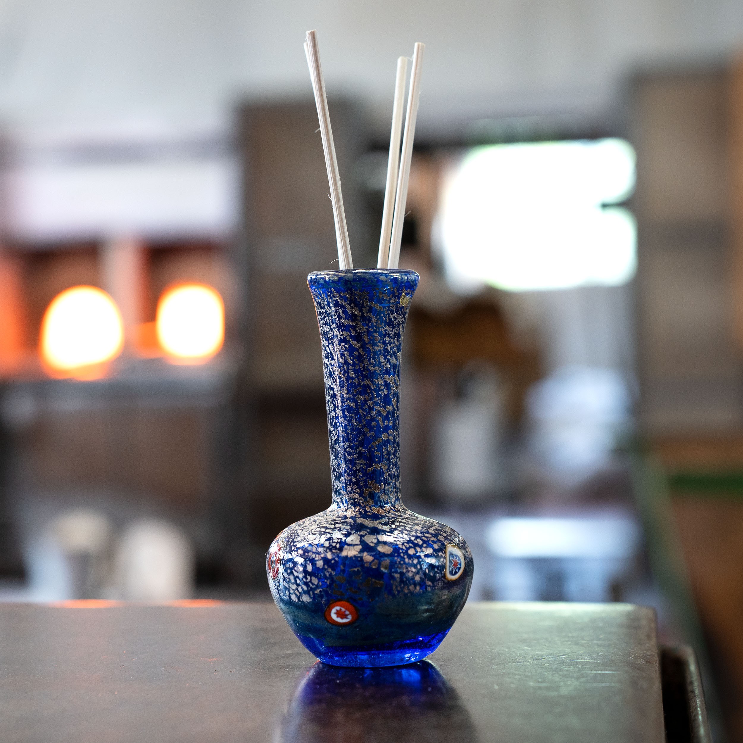 Nella nostra fornace il vetro di Murano prende vita grazie alle mani esperte dei maestri vetrai. Le perle vengono modellate a lume, gli oggetti sono in vetro soffiato. Piccole variazioni di forma e colore rendono ogni pezzo unico e irripetibile.