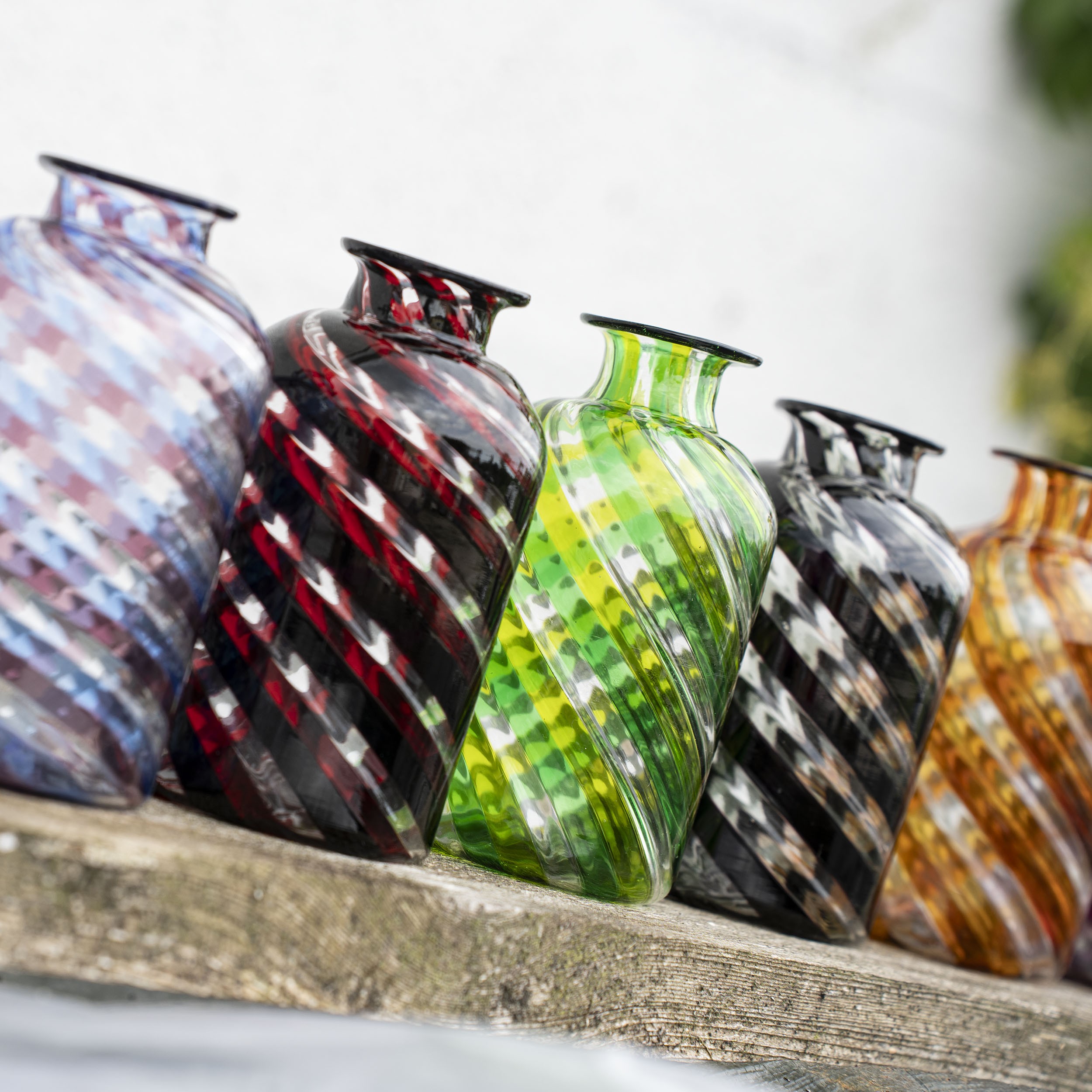 Vasetto artigianale in autentico vetro di Murano, realizzato a mano dai maestri artigiani con canne di vetro multicolore, spirali e lavorati a mano.